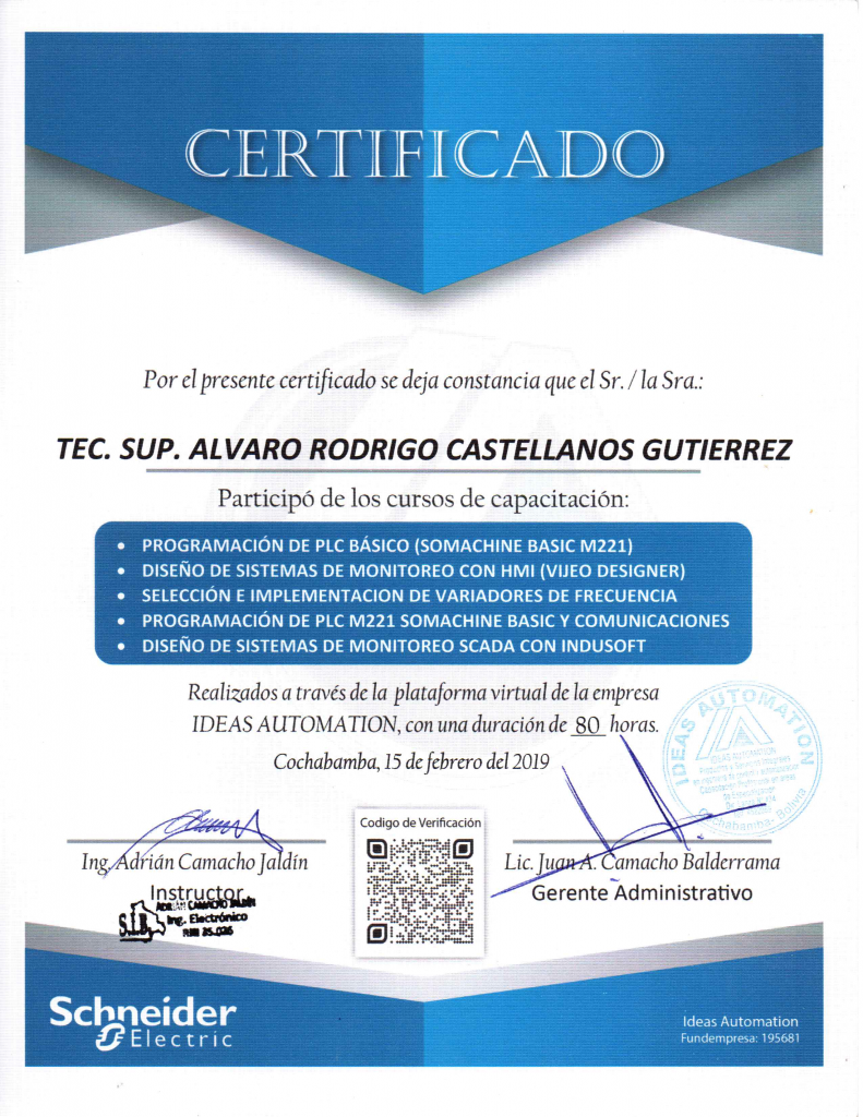 Alvaro Rodrigo Castellanos GutierrezGabriela ValenciaUncategorized Sin comentarios 15FebShareDescargar certificado en PDFDescarga Previous Gandhi Lionel Cardozo Morales15 febrero, 2019 Next Victor Hendrik Rodriguez Perez15 febrero, 2019You Might Also Like Wilson Ramírez Romero OscarCastro Sin comentarios Simón Pedro Quispe Condori OscarCastro Sin comentarios Rubén Ronald Veizaga Zamudio OscarCastro Sin comentarios Roly Alberto Chacapecho Molle OscarCastro Sin comentarios Rolando Javier Antezana Romero OscarCastro Sin comentarios Jhonny Huarachi Guzman OscarCastro Sin comentarios