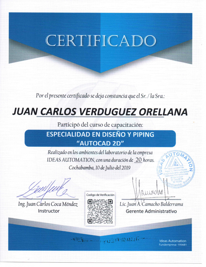 Juan Carlos Verduguez OrellanaGabriela ValenciaUncategorized Sin comentarios 10JulShareDescargar certificado en PDFDescarga Previous Jhasmany Olguera Marza10 julio, 2019 Next Autorización y control31 julio, 2019You Might Also Like Wilson Ramírez Romero OscarCastro Sin comentarios Simón Pedro Quispe Condori OscarCastro Sin comentarios Rubén Ronald Veizaga Zamudio OscarCastro Sin comentarios Roly Alberto Chacapecho Molle OscarCastro Sin comentarios Rolando Javier Antezana Romero OscarCastro Sin comentarios Jhonny Huarachi Guzman OscarCastro Sin comentarios