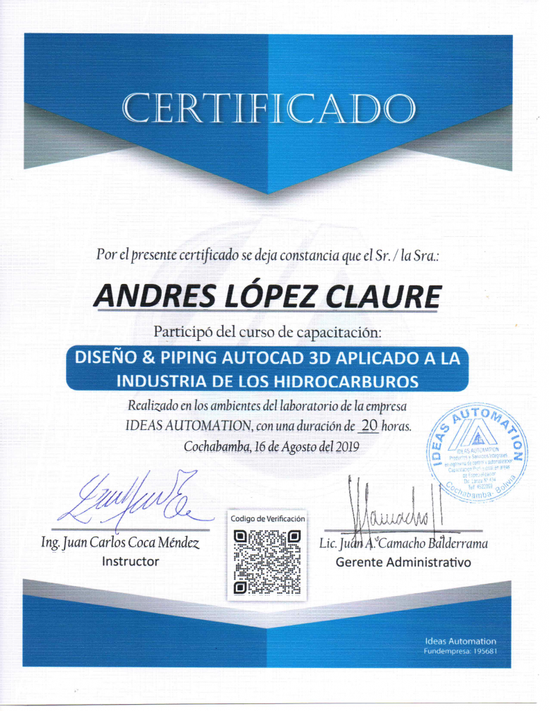 Andres López ClaureGabriela ValenciaUncategorized Sin comentarios 16AgoShareDescargar certificado en PDFDescarga Previous Cálculo de Estructuras con Ram Elements15 agosto, 2019 Next Israel Rodrigo Meneses Ugarte16 agosto, 2019You Might Also Like Wilson Ramírez Romero OscarCastro Sin comentarios Simón Pedro Quispe Condori OscarCastro Sin comentarios Rubén Ronald Veizaga Zamudio OscarCastro Sin comentarios Roly Alberto Chacapecho Molle OscarCastro Sin comentarios Rolando Javier Antezana Romero OscarCastro Sin comentarios Jhonny Huarachi Guzman OscarCastro Sin comentarios