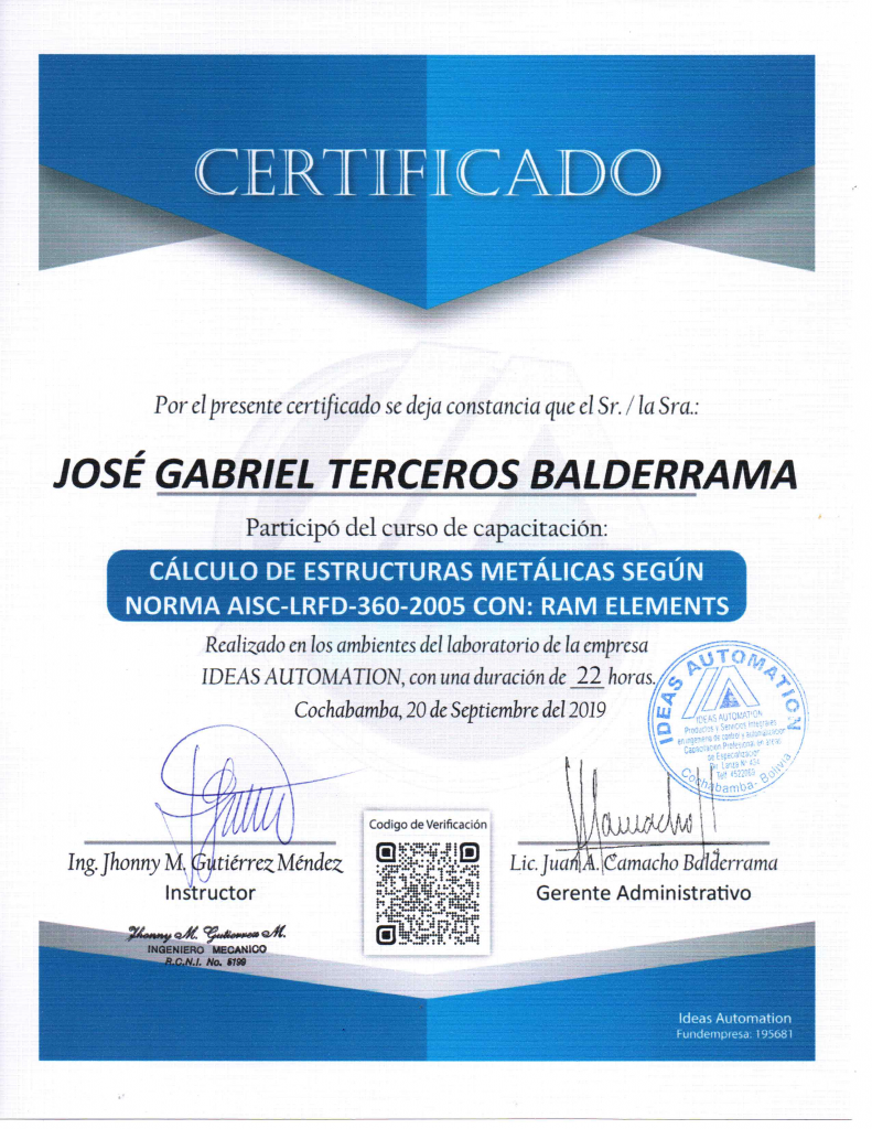 José Gabriel Terceros BalderramaGabriela ValenciaUncategorized Sin comentarios 20SepShareDescargar certificado en PDFDescarga Previous Diego Nogales Revollo20 septiembre, 2019 Next Neil Fausto Villegas Severiche20 septiembre, 2019You Might Also Like Wilson Ramírez Romero OscarCastro Sin comentarios Simón Pedro Quispe Condori OscarCastro Sin comentarios Rubén Ronald Veizaga Zamudio OscarCastro Sin comentarios Roly Alberto Chacapecho Molle OscarCastro Sin comentarios Rolando Javier Antezana Romero OscarCastro Sin comentarios Jhonny Huarachi Guzman OscarCastro Sin comentarios