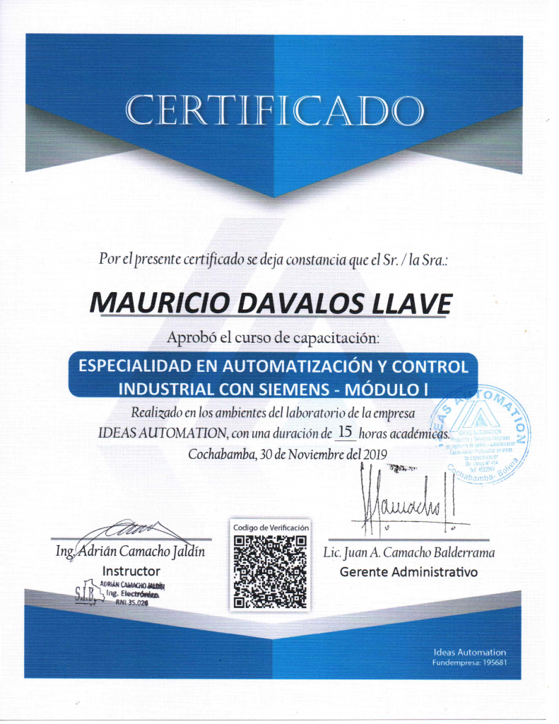 Mauricio Davalos LLaveGabriela ValenciaUncategorized Sin comentarios 30NovShareDescargar certificado en PDFDescarga Previous Juan Andres Cabezas Espinoza30 noviembre, 2019 Next Hernan Serna Cuba30 noviembre, 2019You Might Also Like Wilson Ramírez Romero OscarCastro Sin comentarios Simón Pedro Quispe Condori OscarCastro Sin comentarios Rubén Ronald Veizaga Zamudio OscarCastro Sin comentarios Roly Alberto Chacapecho Molle OscarCastro Sin comentarios Rolando Javier Antezana Romero OscarCastro Sin comentarios Jhonny Huarachi Guzman OscarCastro Sin comentarios