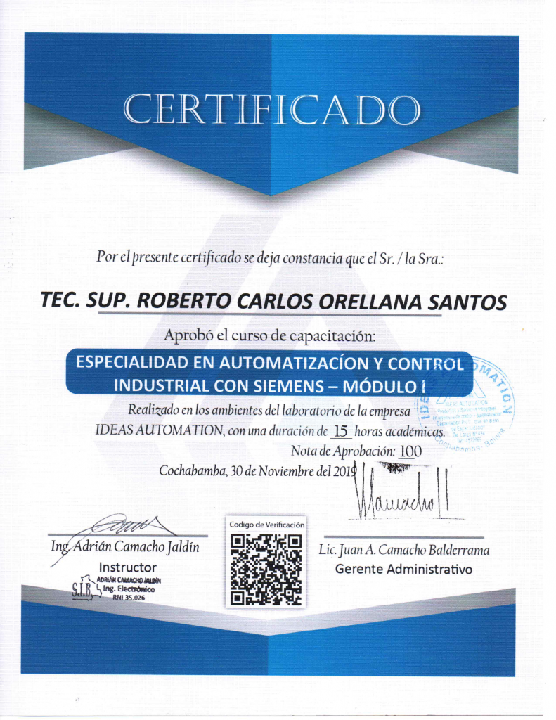 Roberto Carlos Orellana SantosGabriela ValenciaUncategorized Sin comentarios 30NovShareDescargar certificado en PDFDescarga Previous Aprobados Cálculo Luminotécnico con Dialux22 noviembre, 2019 Next Flavio Reque Torrico30 noviembre, 2019You Might Also Like Wilson Ramírez Romero OscarCastro Sin comentarios Simón Pedro Quispe Condori OscarCastro Sin comentarios Rubén Ronald Veizaga Zamudio OscarCastro Sin comentarios Roly Alberto Chacapecho Molle OscarCastro Sin comentarios Rolando Javier Antezana Romero OscarCastro Sin comentarios Jhonny Huarachi Guzman OscarCastro Sin comentarios
