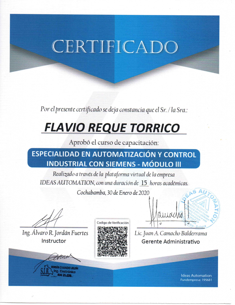 Flavio Reque TorricoGabriela Valenciacertificados Sin comentarios 30EneShareDescargar certificado en PDFDescarga Previous Gustavo Ticona Bautista30 enero, 2020 Next Javier Vedia Ninachi30 enero, 2020You Might Also Like Wilson Ramírez Romero OscarCastro Sin comentarios Simón Pedro Quispe Condori OscarCastro Sin comentarios Rubén Ronald Veizaga Zamudio OscarCastro Sin comentarios Roly Alberto Chacapecho Molle OscarCastro Sin comentarios Rolando Javier Antezana Romero OscarCastro Sin comentarios Jhonny Huarachi Guzman OscarCastro Sin comentarios