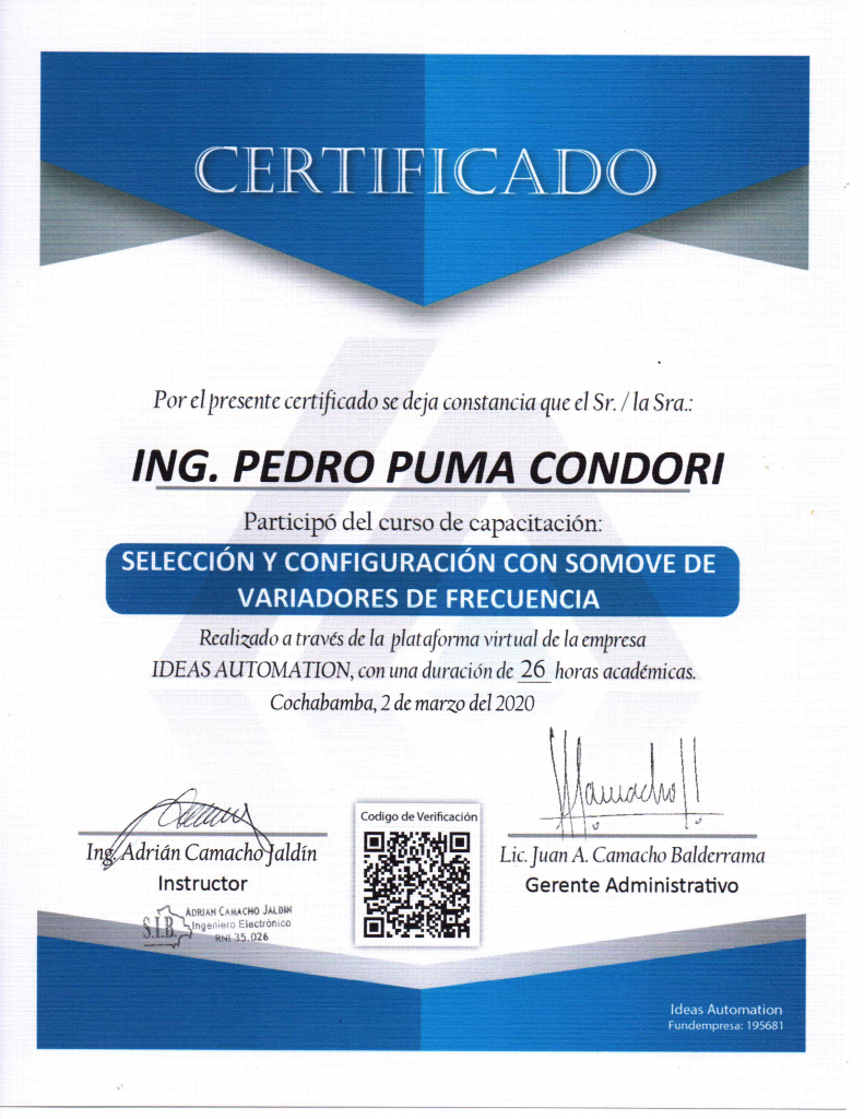 Pedro Puma CondoriGabriela Valenciacertificados Sin comentarios 01MarShareDescargar certificado en PDF Descarga Previous Alex Dulfredo Pilcolora Mendoza1 marzo, 2020 Next Juan Carlos Quelali Mamani2 marzo, 2020You Might Also Like Wilson Ramírez Romero OscarCastro Sin comentarios Simón Pedro Quispe Condori OscarCastro Sin comentarios Rubén Ronald Veizaga Zamudio OscarCastro Sin comentarios Roly Alberto Chacapecho Molle OscarCastro Sin comentarios Rolando Javier Antezana Romero OscarCastro Sin comentarios Jhonny Huarachi Guzman OscarCastro Sin comentarios