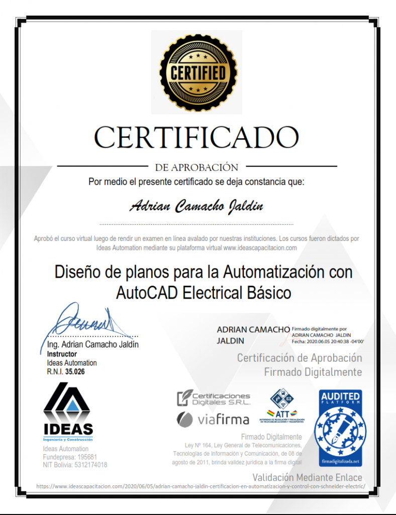 Adrian Camacho Jaldin – Certificación en Automatización y Control con Schneider ElectricAdrian Camacho JaldinUncategorized Sin comentarios 05JunShareDescargar Certificado ORIGINALDescarga Previous Juan Javier Luizaga Jimenez1 junio, 2020 Next Alan Jairo Jaldin Siles9 junio, 2020You Might Also Like Wilson Ramírez Romero OscarCastro Sin comentarios Simón Pedro Quispe Condori OscarCastro Sin comentarios Rubén Ronald Veizaga Zamudio OscarCastro Sin comentarios Roly Alberto Chacapecho Molle OscarCastro Sin comentarios Rolando Javier Antezana Romero OscarCastro Sin comentarios Jhonny Huarachi Guzman OscarCastro Sin comentarios