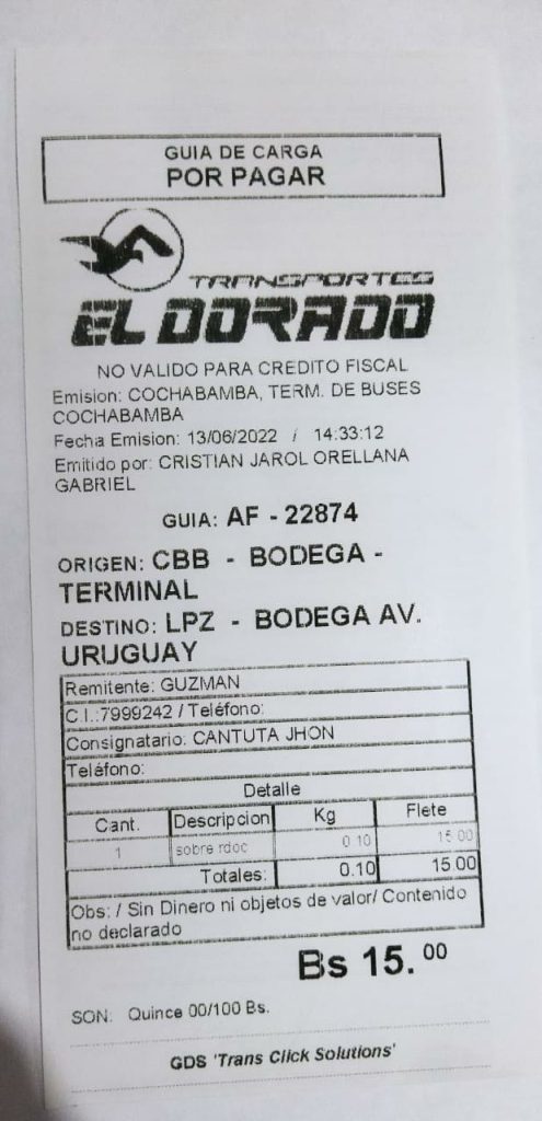 El certificado fue enviado por transporte terrestre en fecha 13/06/2022 mediante Flota el dorado, se adjunta numero de gúia