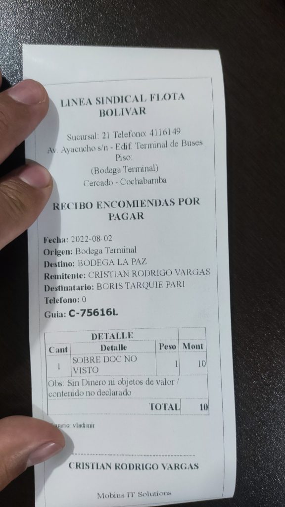 El certificado fue enviado por transporte terrestre en fecha: