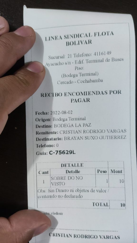 El certificado fue enviado por transporte terrestre en fecha 02/08/2022 mediante Flota Bolivar, se adjunta numero de guía