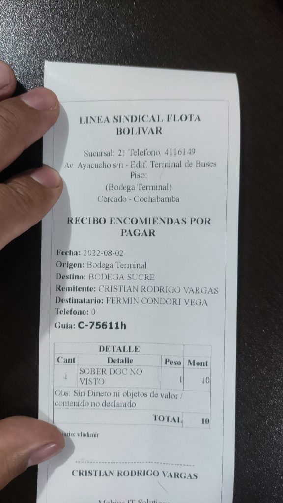 El certificado fue enviado por transporte terrestre en fecha 02/08/2022 mediante Flota Bolivar, se adjunta numero de guía