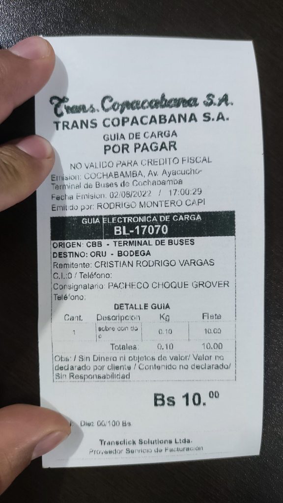 El certificado fue enviado por transporte terrestre en fecha 02/08/2022 mediante Flota Trans Copacabana S.A. se adjunta numero de guía