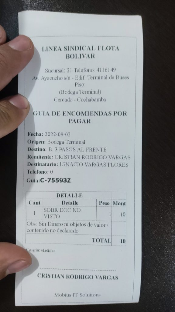 El certificado fue enviado por transporte terrestre en fecha 02/08/2022 mediante Flota Bolivar, se adjunta numero de guía