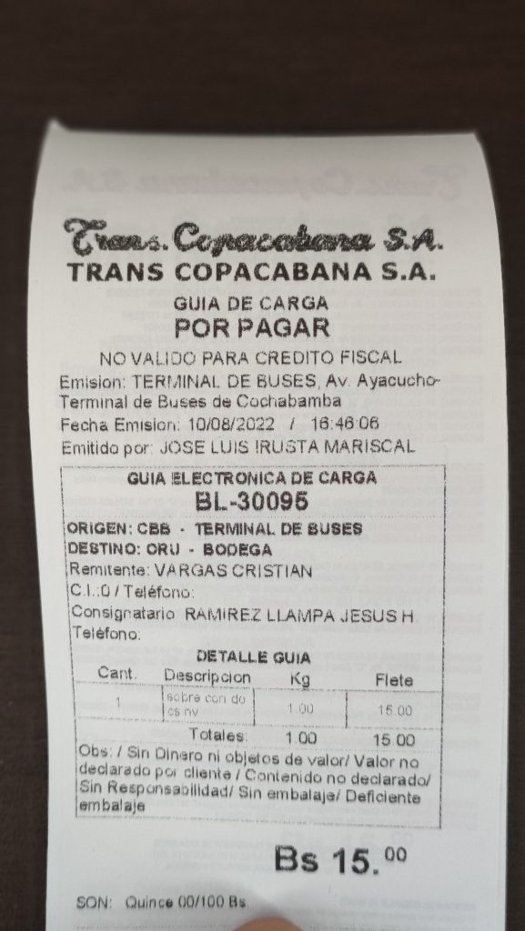 El certificado fue enviado por transporte terrestre en fecha: