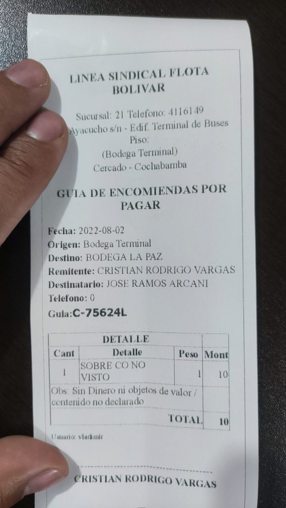 El certificado fue enviado por transporte terrestre en fecha 02/08/2022 mediante Flota Bolivar, se adjunta numero de guía