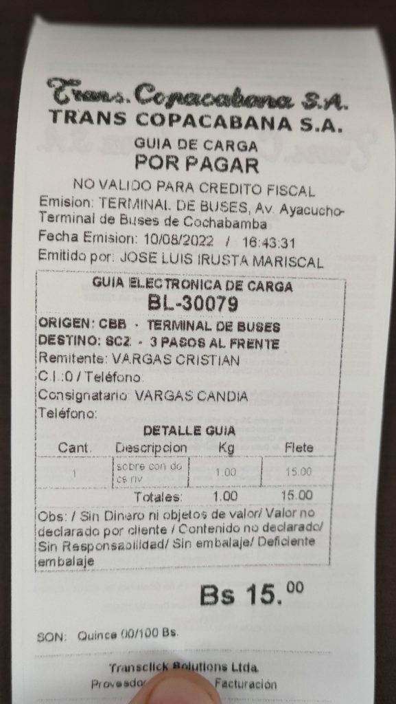 El certificado fue enviado por transporte terrestre en fecha: